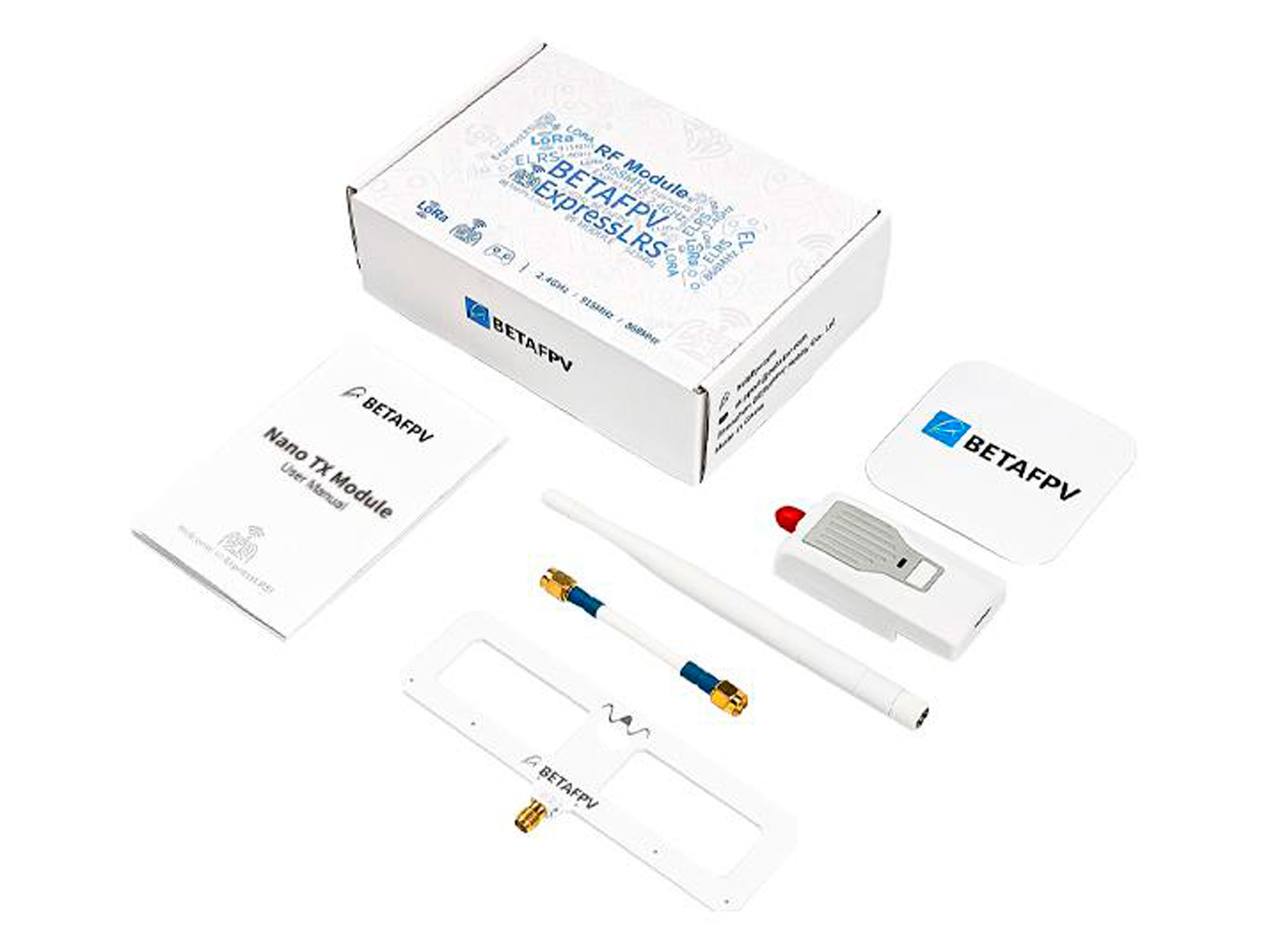 Передавальний модуль BetaFPV Nano створений на основі загальнодоступної системи радіокерування ExpressLRS з відкритим вихідним кодом. Система зв'язку ExpressLRS націлена на досягнення максимально можливої продуктивності каналу як за швидкістю, так і за затримкою і дальністю. Передавальний модуль BetaFPV ELRS Nano створений для радіопередавачів з підтримкою Lite-модулів: FrSky Taranis X-Lite, Taranis X9 Lite, TBS Tango 2 та іншими з прошивкою OpenTX і підтримкою протоколу Crossfire. На модулі розташована кнопка яка відповідає за увімкнення режиму прив'язки з приймачем (Bind) та зміну потужності модуля, вище кнопки розташований LED-індикатор статусу роботи, а нище порт USB Type-C для під'єднання до комп'ютера. Примітки: