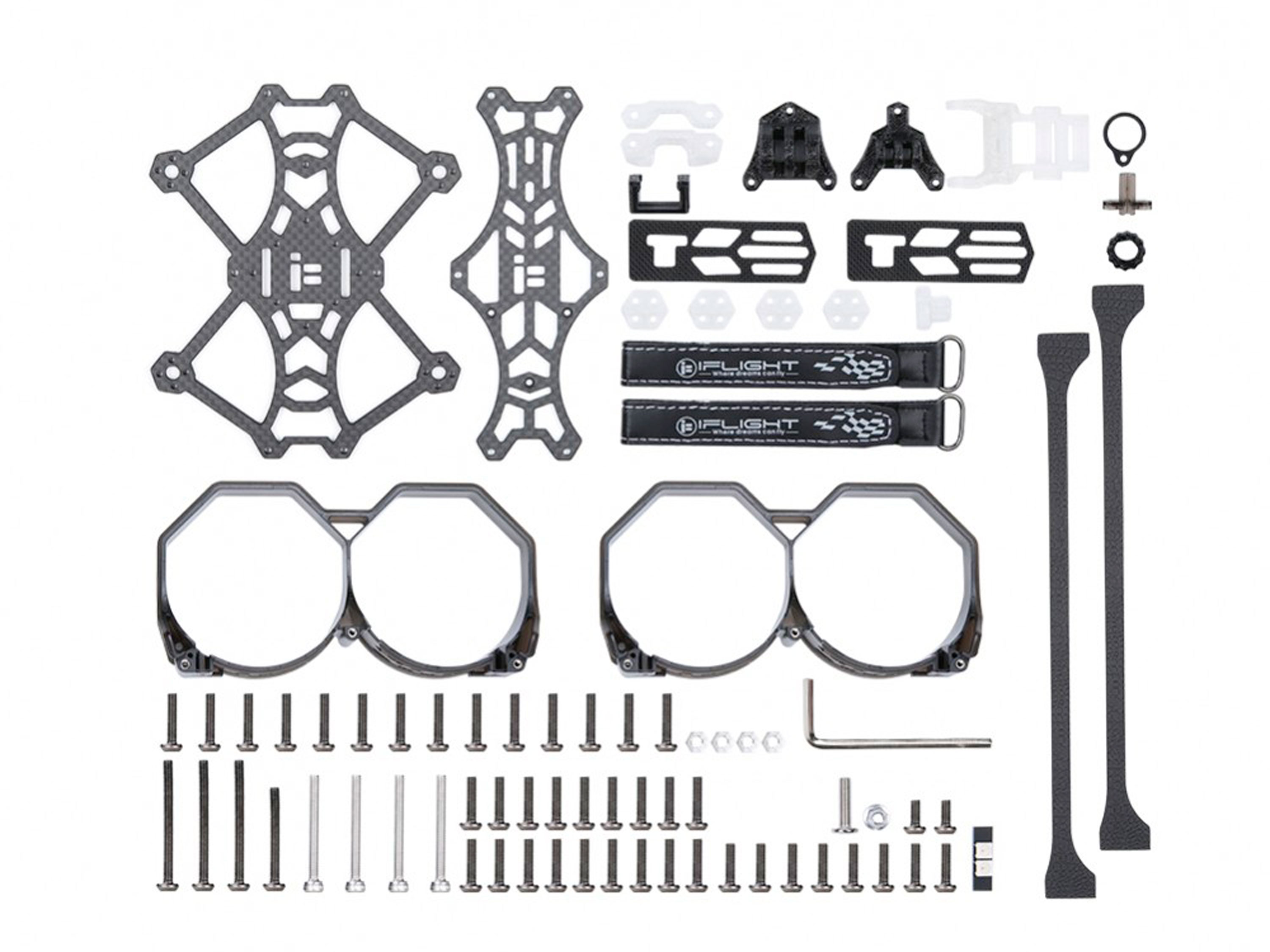 Карбонова рама iFlight ProTek25 призначена для стабільної відеозйомки під час FPV-польотів на 2.5 дюймових пропелерах. Основа рами - це карбонова пластина товщиною 3мм, яка розрахована на встановлення польотних контролерів AIO та цифрових або аналогових відеосистем з відстанню між отворами кріплення 26х26мм або 20х20мм та висотою до 20мм. Особливості: