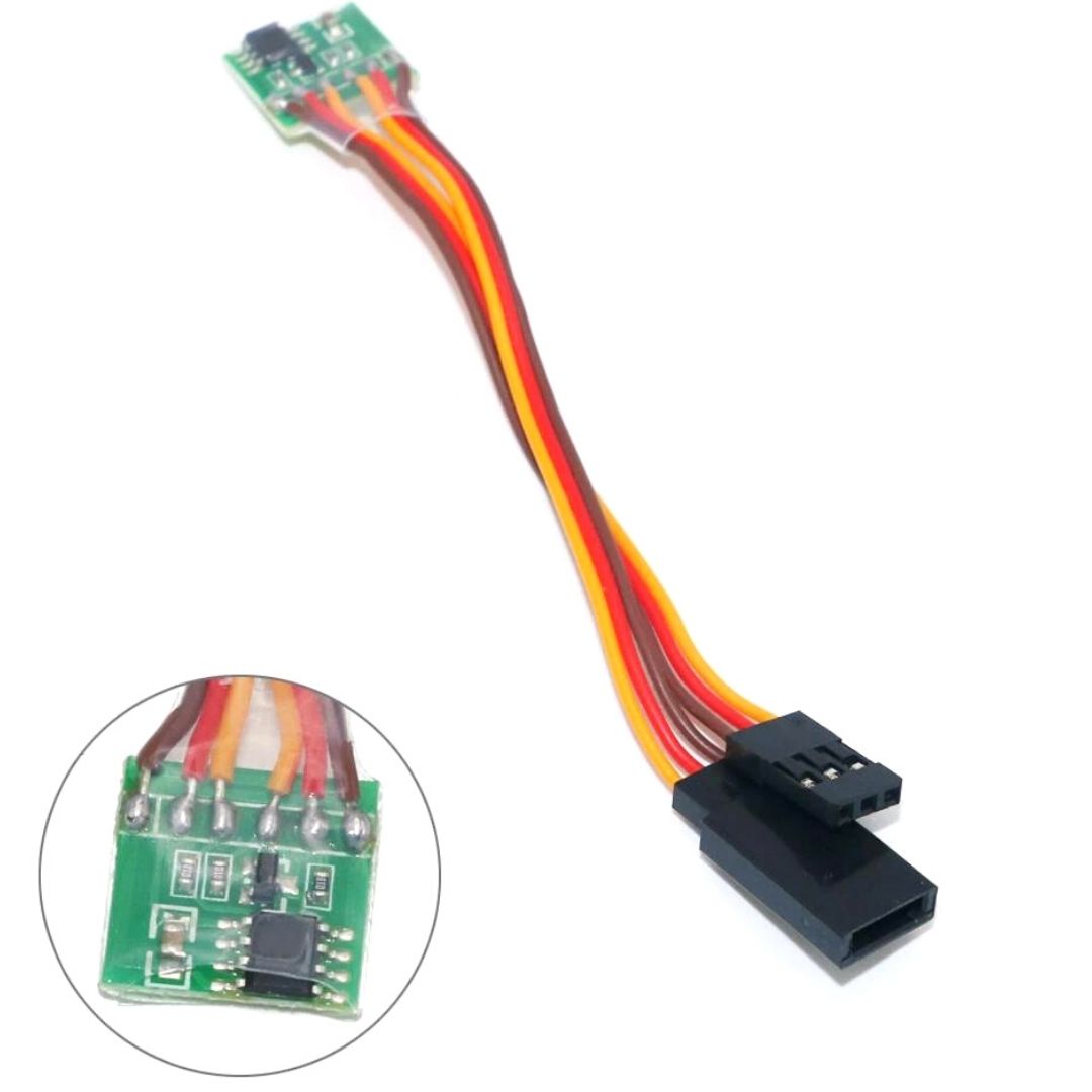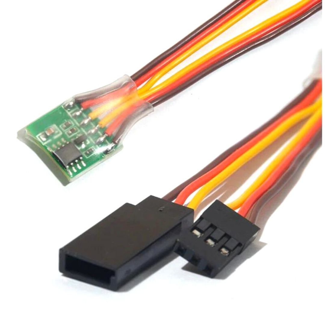 Цей простий пристрій дозволяє "розвернути" сигнал від приймача, щоб сервомеханізм працював в іншу сторону. Підключається послідовно між приймачем і сервомеханізмом. Технічні характеристики: - Вхідна напруга: 4-6В;