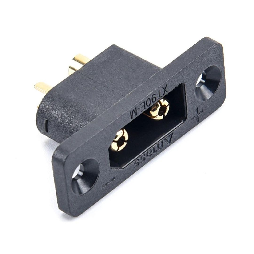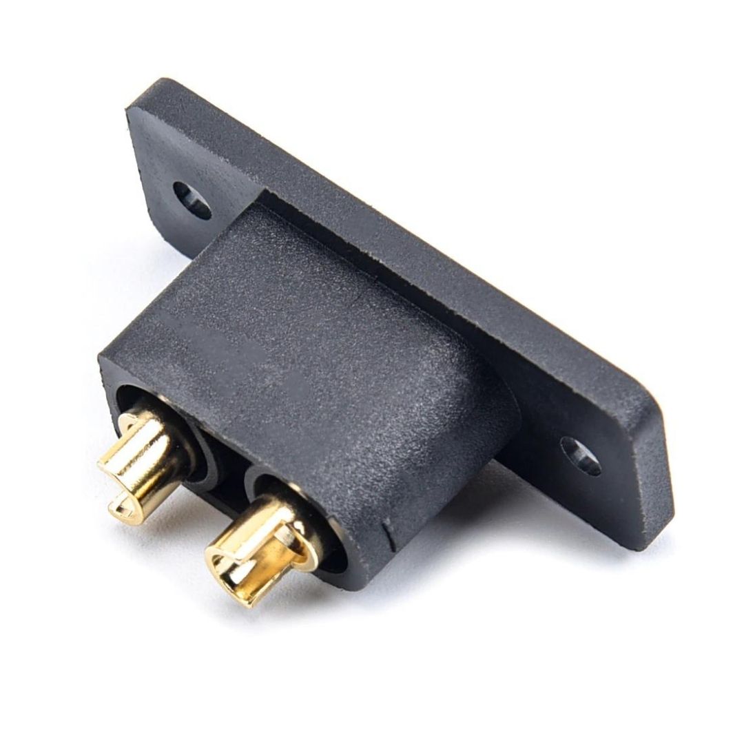 Роз'єм XT90E-M від виробника Amass виготовлений з високотемпературного нейлону з позолоченими пружинними контактами. XT90E-M забезпечить надійне високоамперне з’єднання для струмів до 90A. У цих роз’ємів велика площа контакту, це означає менший опір, і відповідно великі струми без нагрівання в місці з’єднання. Технічні характеристики: - Тип роз’єму: 5мм;