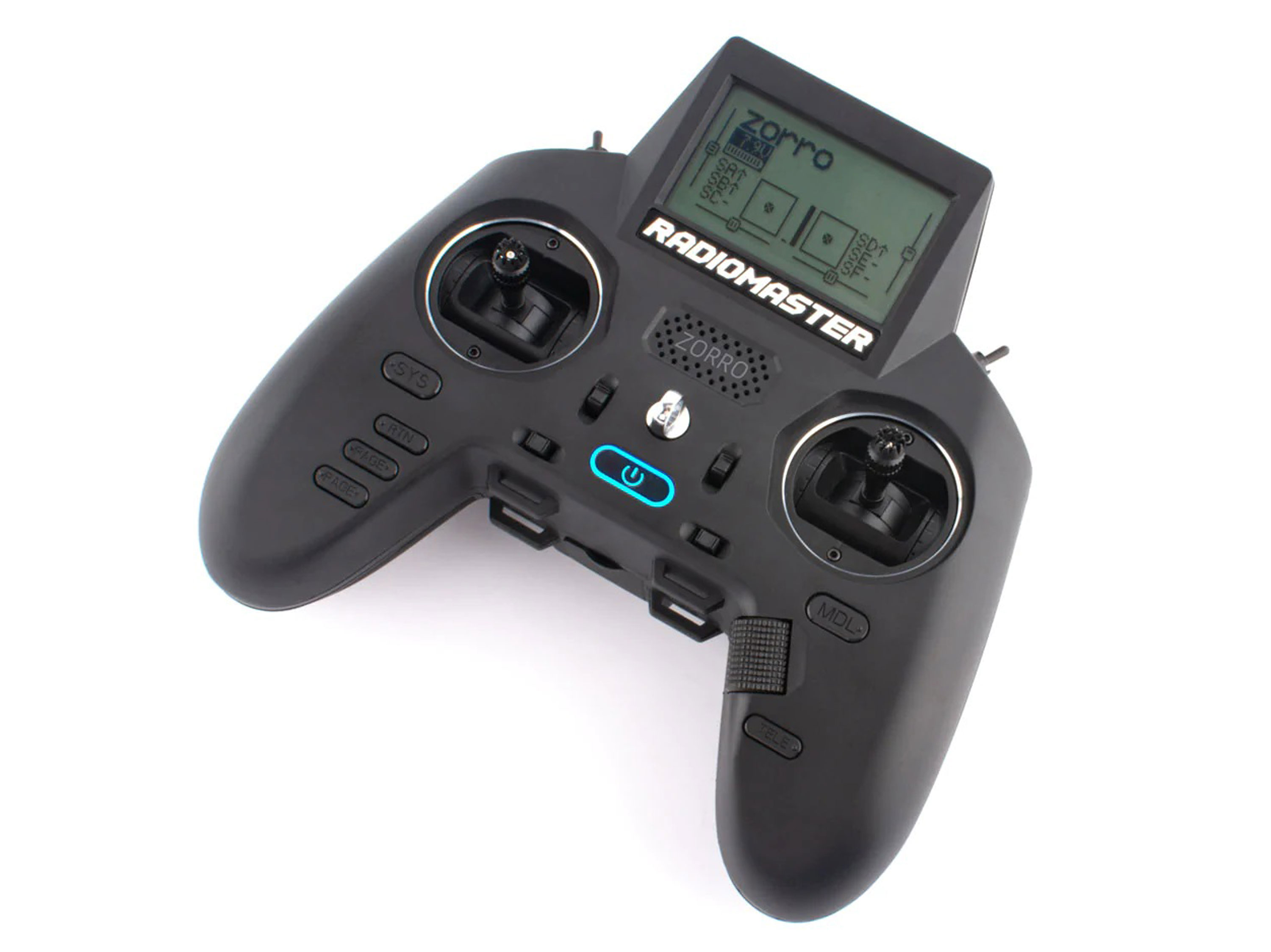 RadioMaster Zorro відрізняється ергономічним дизайном, великим яскравим РК-екраном, регульованими стіками з датчиками Холла, відсіком для зовнішнього модуля нано-розміру, підтримкою відкритих прошивок OpenTX і EdgeTX, USB-C інтерфейсом для оновлення прошивки та заряду Li-ion акумуляторів.