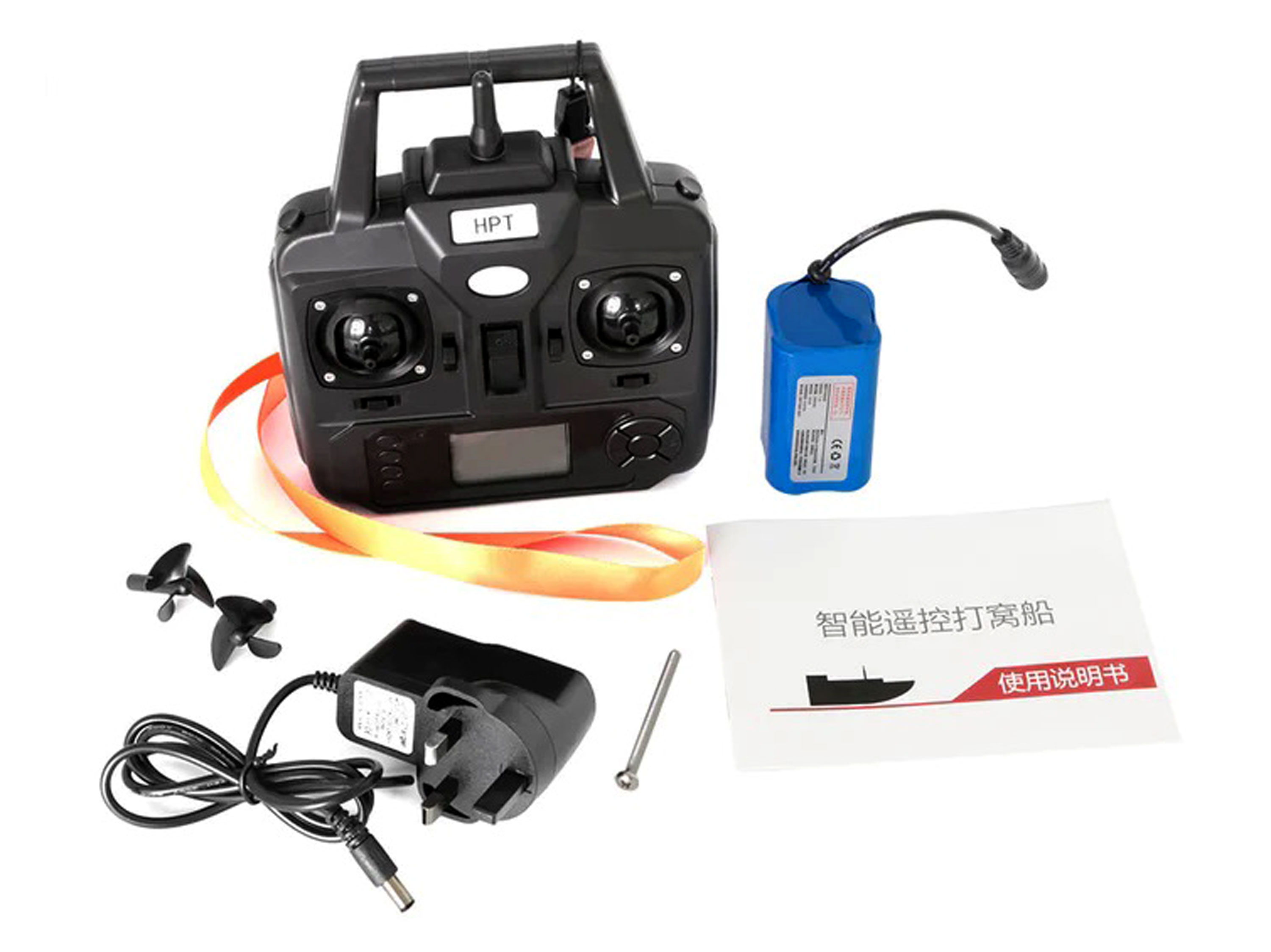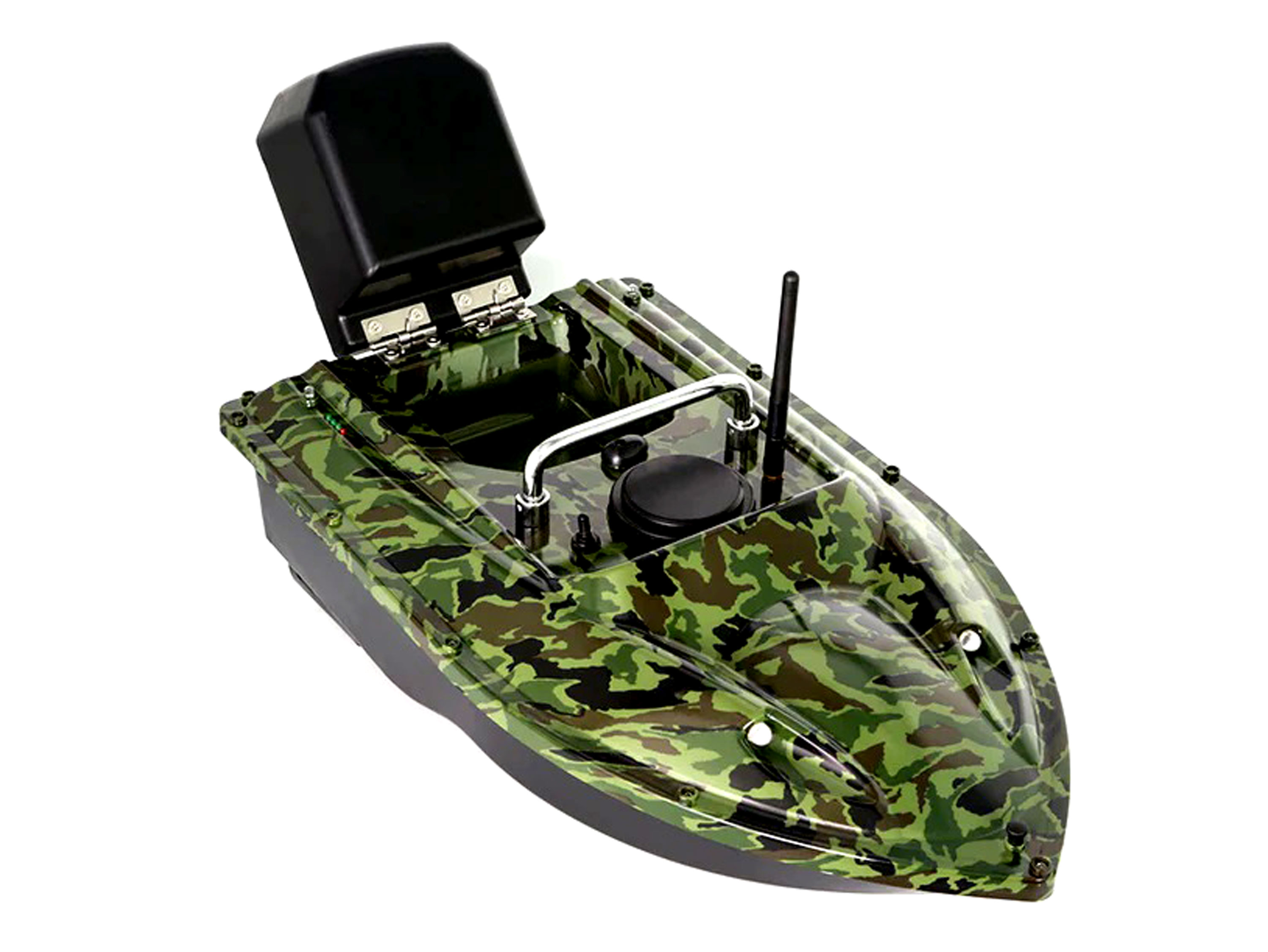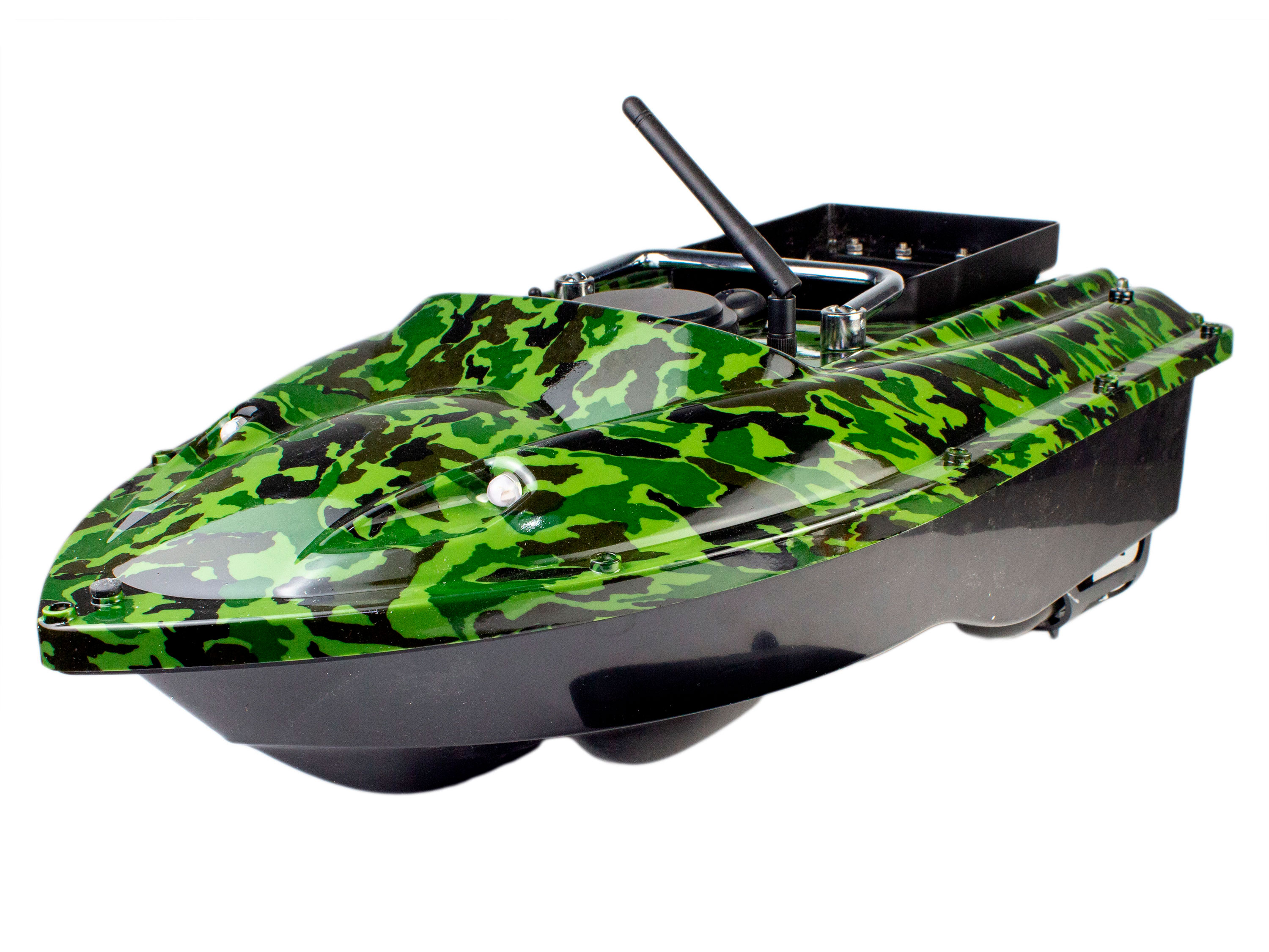 Повністю зібраний та готовий до використання радіокерований карповий кораблик для завозу прикормки. Катер має зручний пульт керування з можливістю дистанційного скидання бункера, вмикання/вимикання навігаційного світла, а також можливістю зафіксувати швидкість переднього чи заднього ходу (круїз-контроль). На корпусі встановлено LED-індикатори заряду акумулятора, індикатор почне показувати повільні спалахи коли акумулятор буде розряджено до напруги менше ніж 2.3В. Також на корпусі виведено закритий відсік з роз'ємом для підключення додаткового акумулятора живлення. Кораблик має вбудований гіроскоп, який вирівнює його по прямій траекторії, що робить його ще більш стійким та зручнішим у керуванні. Особливості: - Дальність дії керування до 500м;