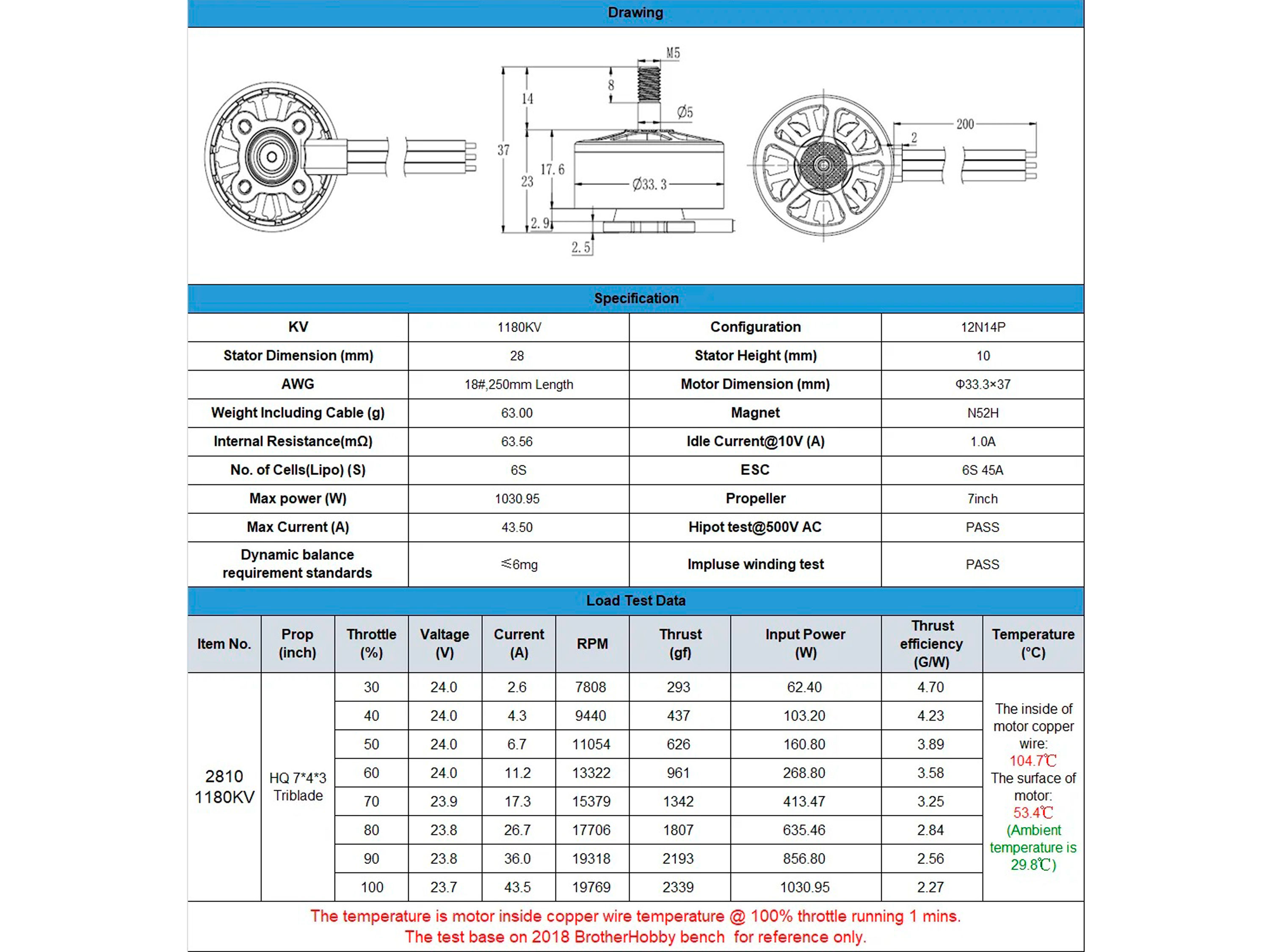 Технічні характеристики: - KV: 1180 об/Вольт;