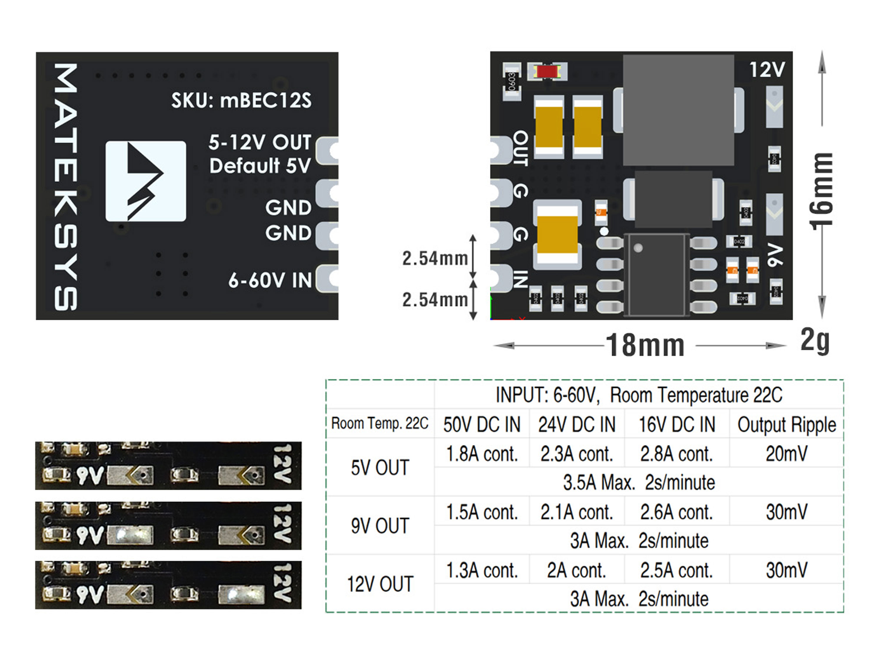 Комплектація: - Стабілізатор напруги Matek 5В/9В/12В (2-12S LiPO) *1шт.