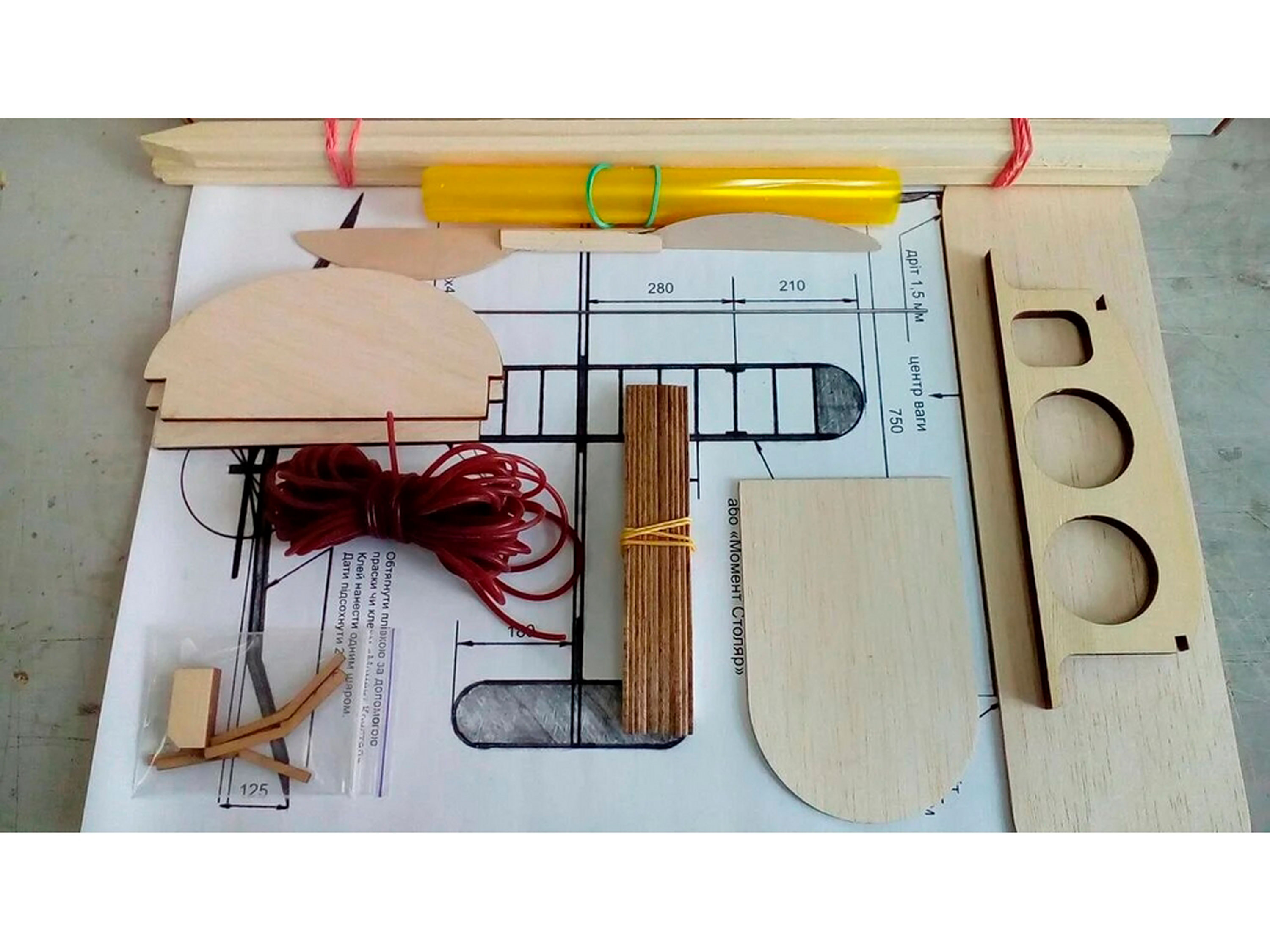 Набір деталей для виготовлення схематичної моделі метального планера. Технічні характеристики: - Розмах крила: 770мм;