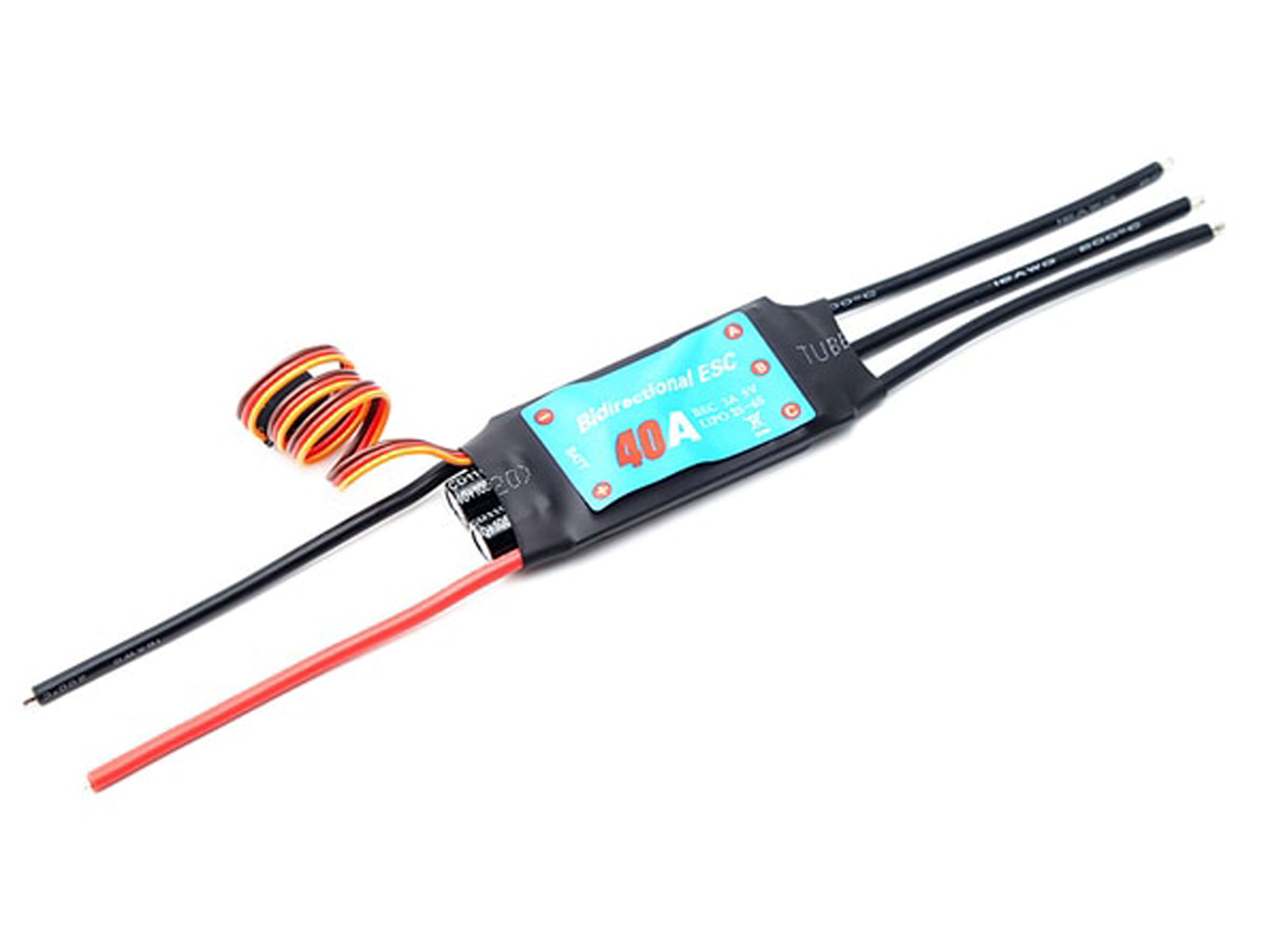 Безколекторний регулятор швидкості 40А для радіокерованих автомоделей та судномоделей. Регулятор має передній та задній хід, але не має гальм. Технічні характеристики: - Напруга живлення: 7.4-22.2В (2-6S LiPo);