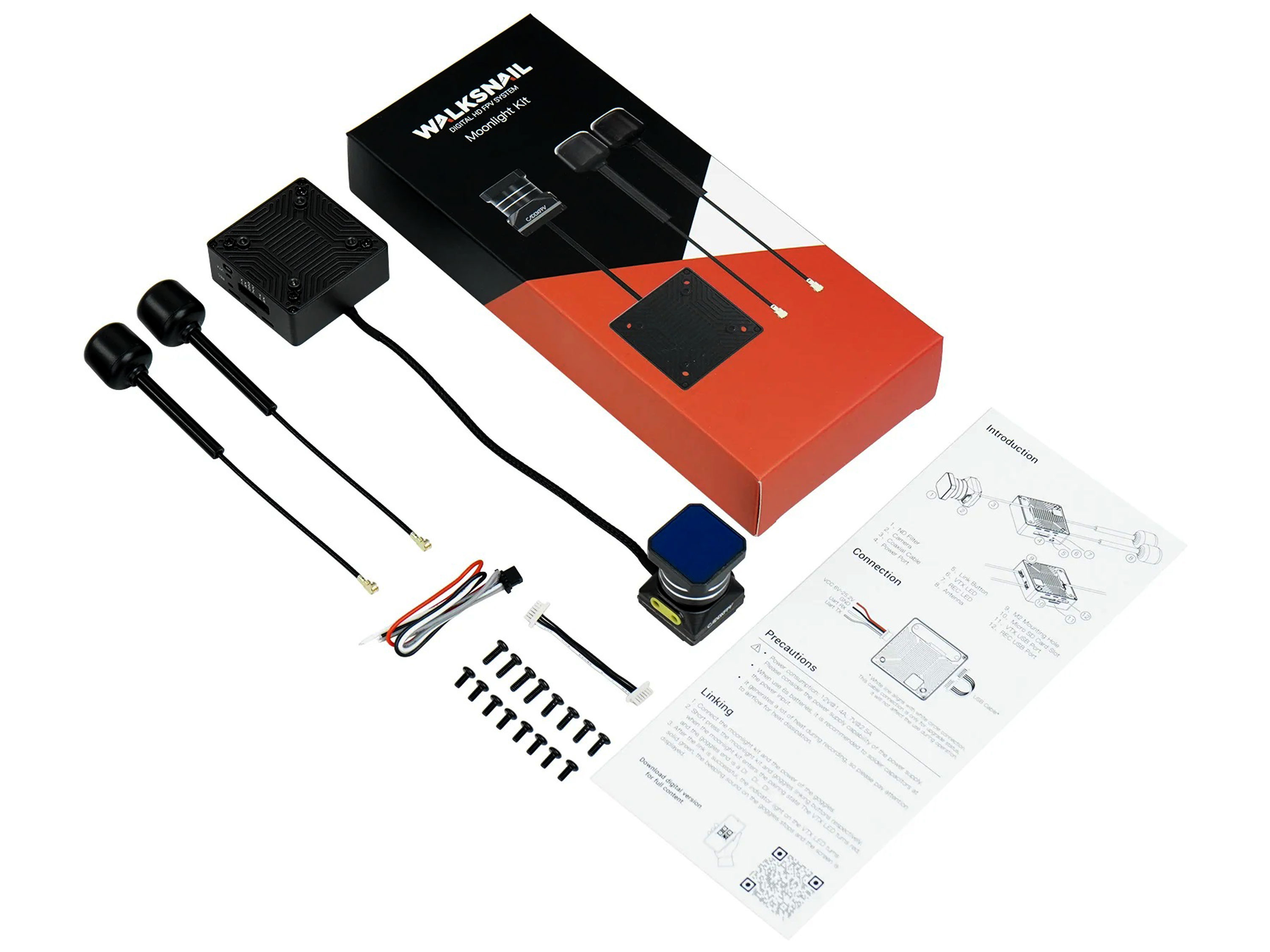 Цифрова відеосистема Walksnail Moonlight 4K відрізняється від аналогічних підвищеною потужністю передавача, а також високою чутливістю камери для якісної зйомки при малому освітленні. Відеосистема Moonlight підтримує технологію цифрової передачі та здатна забезпечити передачу плавного та чіткого цифрового зображення з низькою затримкою сигналу до 22 мілісекунд і трансляцію на великі дистанції до 4 кілометрів (в залежності від зовнішніх умов). Особливості: - Висока якість зображення: 4K/60FPS;