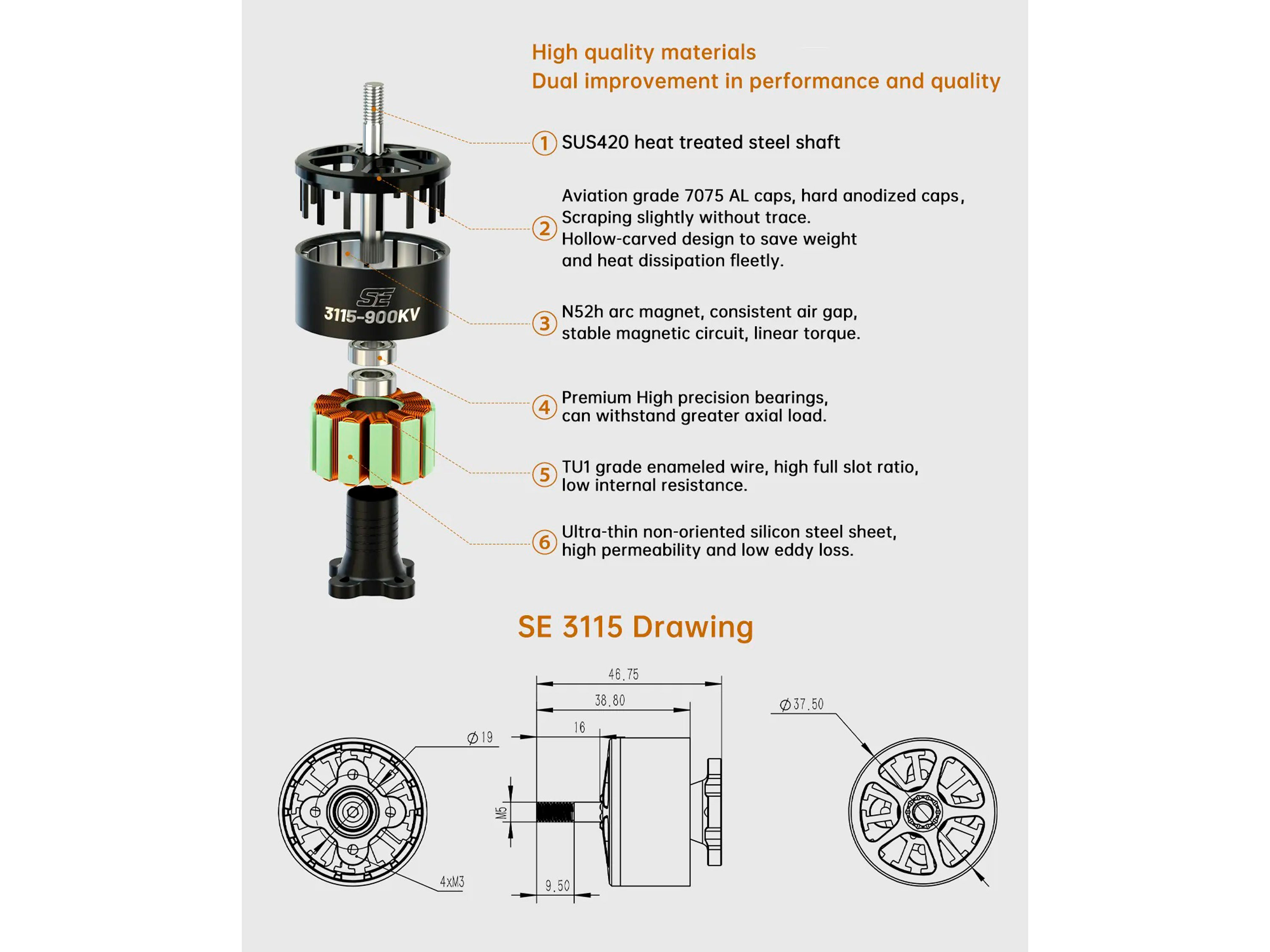 Комплектація: - Двигун безколекторний BrotherHobby SE 3115-900kv *1шт;