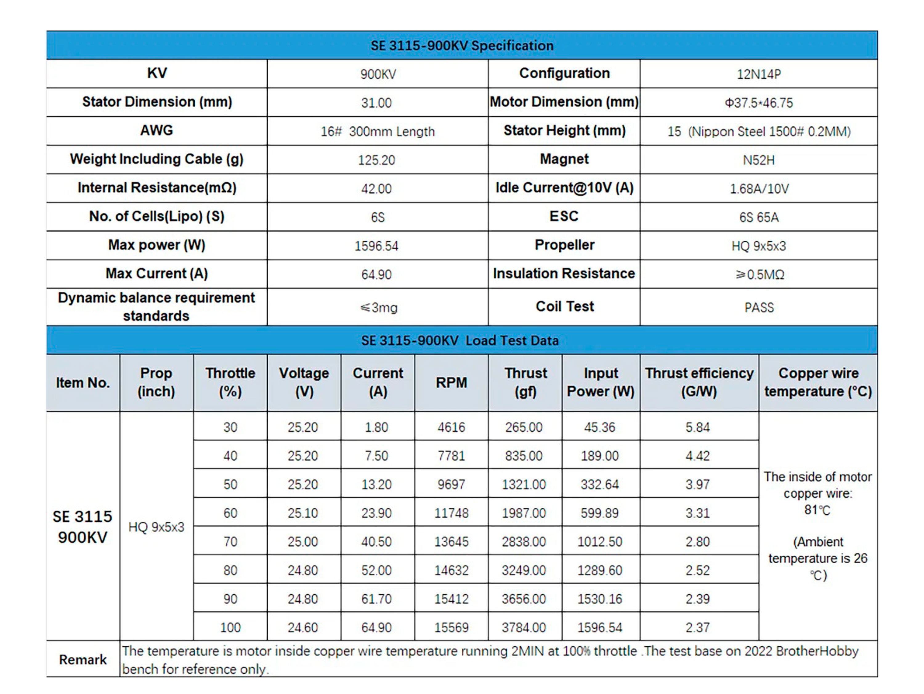 Технічні характеристики: - KV: 900 об/Вольт;
